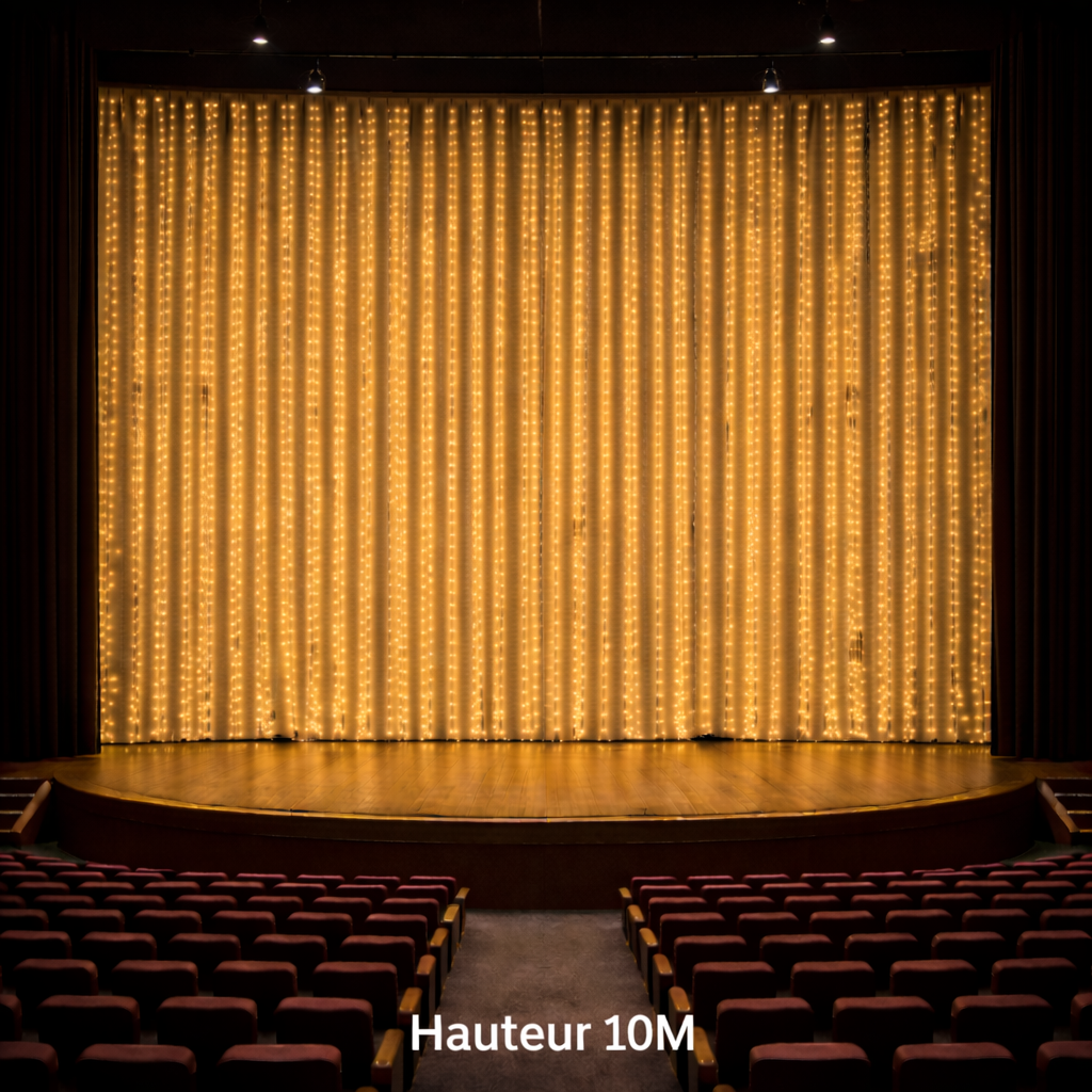 Cette flexibilité permet d’adapter le rideau lumineux à l’ambiance souhaitée, au type d’événement et aux contraintes techniques du lieu.