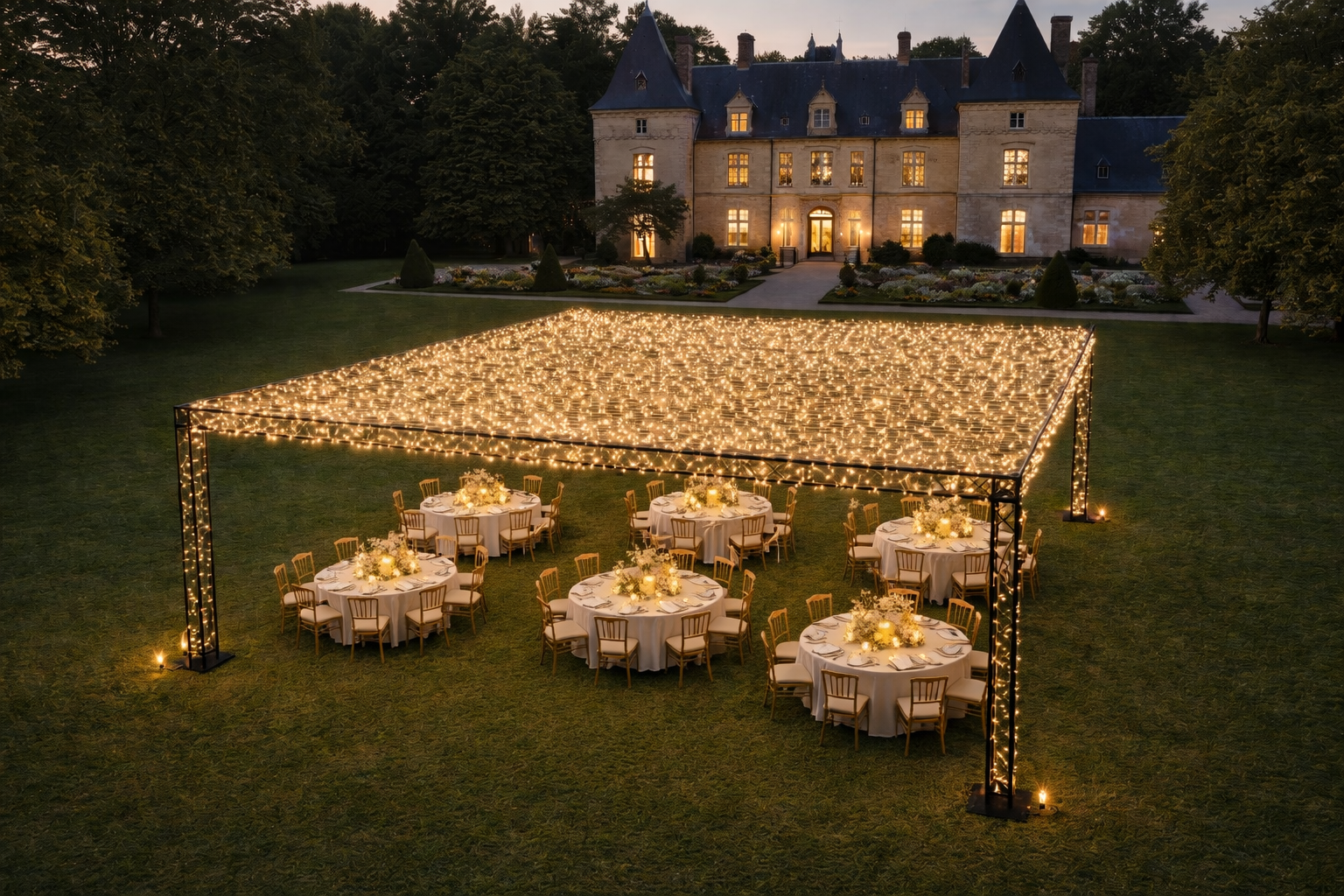 Le ciel étoilé en location proposé par Comptoir de la Guirlande transforme instantanément n’importe quel lieu en un décor spectaculaire et immersif. Véritable signature visuelle pour vos événements, ce dispositif lumineux apporte une ambiance élégante, chaleureuse et féérique, aussi bien en intérieur qu’en extérieur. Que vous organisiez un mariage, une soirée d’entreprise ou un événement privé, le ciel étoilé est une solution haut de gamme qui marque les esprits dès les premiers instants.