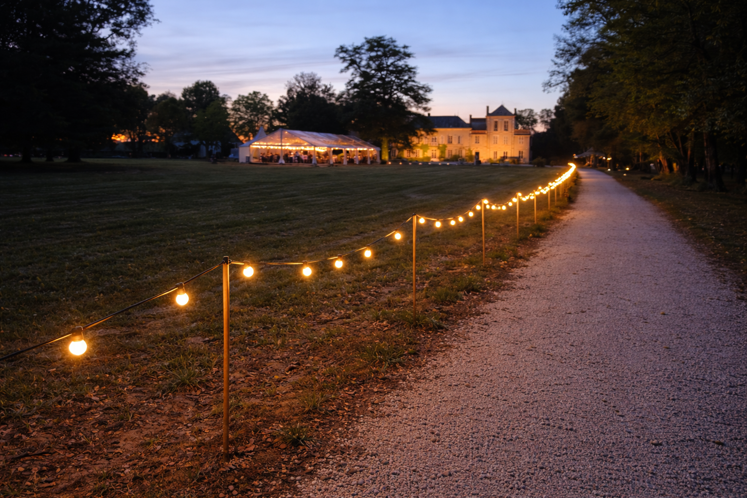 Offrez à vos invités un accueil lumineux, sécurisé et professionnel grâce à notre kit de mise en lumière de chemin 100 mètres.
