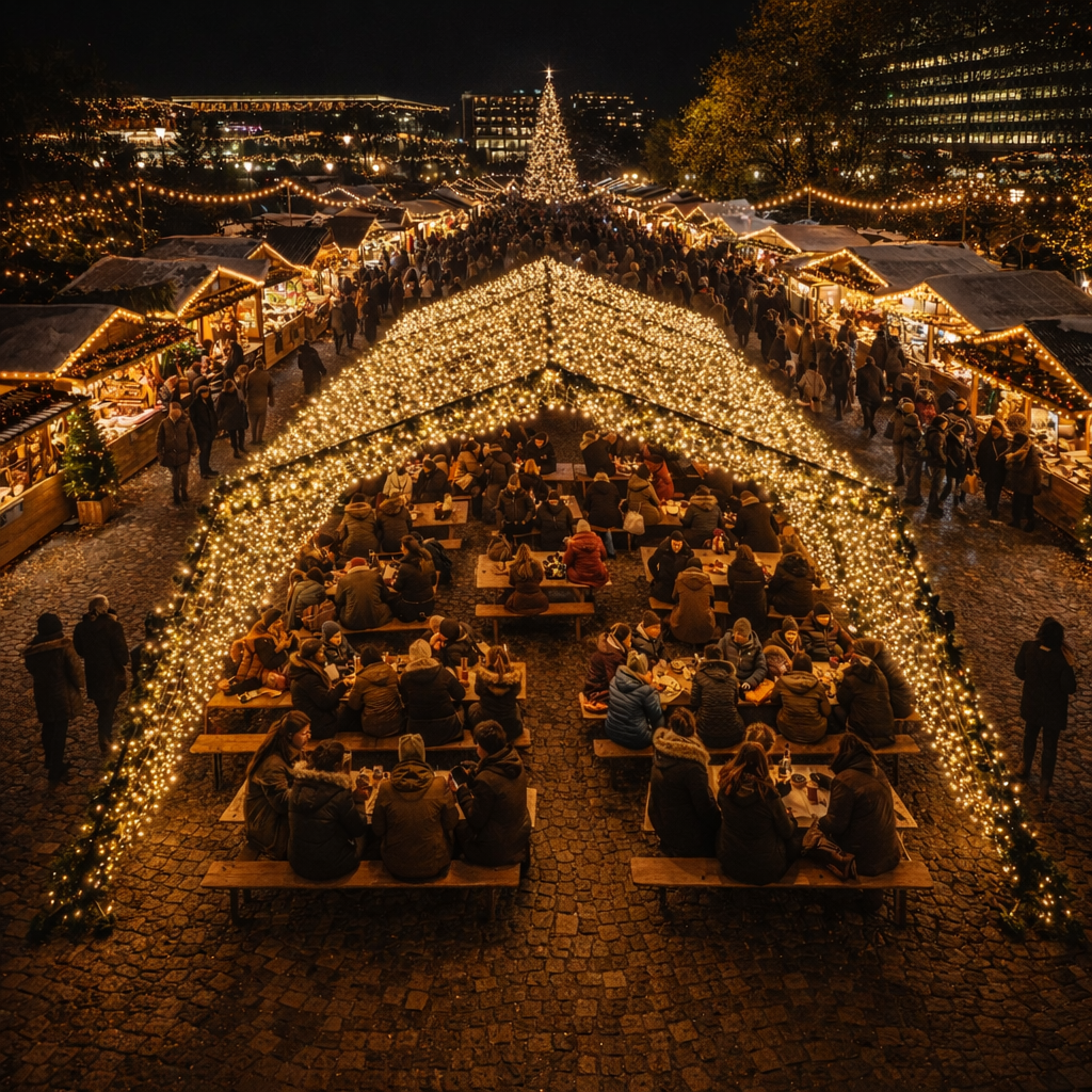 Tente de Noel lumineuse - 6m de large x 6.3m de Long + Guirlandes - En retrait
