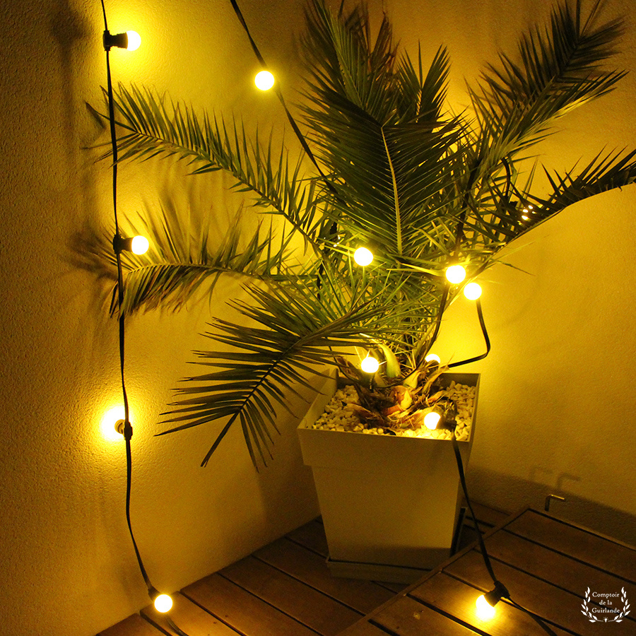 Les guirlandes guinguettes IP44 sont à utiliser dans des endroits peu exposé aux éléments extrêmes, c’est-à-dire abrités sous une pergola ou une tonnelle.