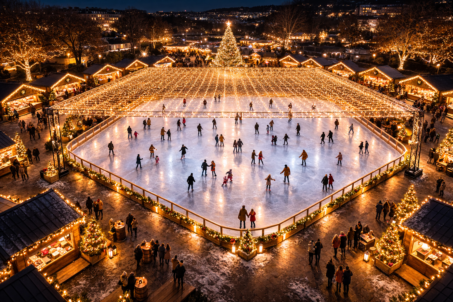 L’installation comprend 1500 mètres de guirlandes lumineuses, soit 15 000 LED, soigneusement réparties pour garantir un rendu équilibré et haut de gamme. L’espacement de 10 cm entre chaque guirlande ainsi que 10 cm entre chaque LED permet d’obtenir une trame lumineuse régulière, sans zones d’ombre ni surcharge visuelle. Le résultat est à la fois intense et délicat, idéal pour créer une atmosphère chaleureuse, féerique ou élégante selon le type d’événement.