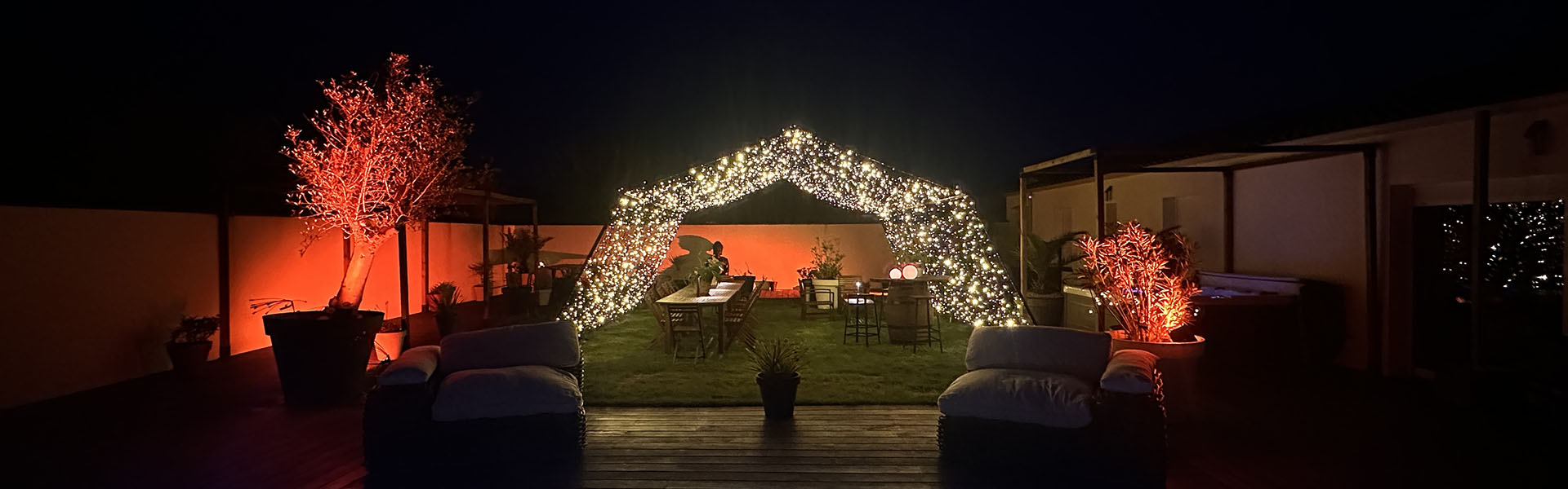 Pour sublimer encore davantage votre installation, nous proposons en option la location d’un gradateur. Celui-ci permet de régler l’intensité lumineuse des guirlandes de 10 % à 100 %, selon l’ambiance souhaitée. Lumière douce pour un moment intime ou éclat lumineux pour une soirée festive : vous avez le contrôle total de l’atmosphère. Ce petit détail fait toute la différence et vous permet d’adapter la luminosité au fil de la soirée.