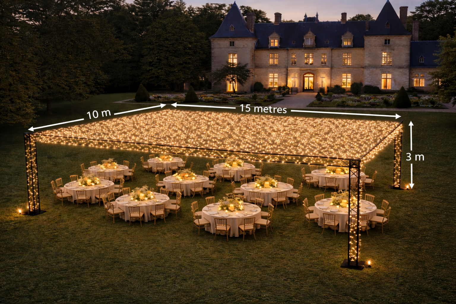 Mise en lumière d'un Mariage en Charente-Maritime avec guirlandes guinguettes blanc chaud