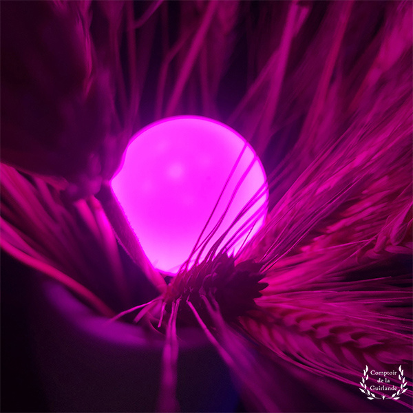 - C'est le globe de plastique qui est coloré Rose pas les leds.