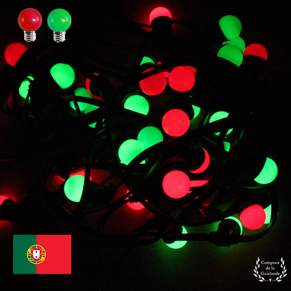 N'hésitez plus, vous êtes sur le site spécialisé sur les guirlandes guinguette aux couleurs du Portugal ! Nos guirlandes sont composées de vert et de rouge, idéales pour accorder l'éclairage à la décoration de votre salle ! Dansez un Fado et dégustez les recettes portugaises comme la morue, sous un éclairage tamisé composé d'une multitude de guirlandes lumineuses aux couleurs du pays.