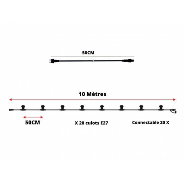 - La guirlande est raccordable jusqu'à 800 mètres,