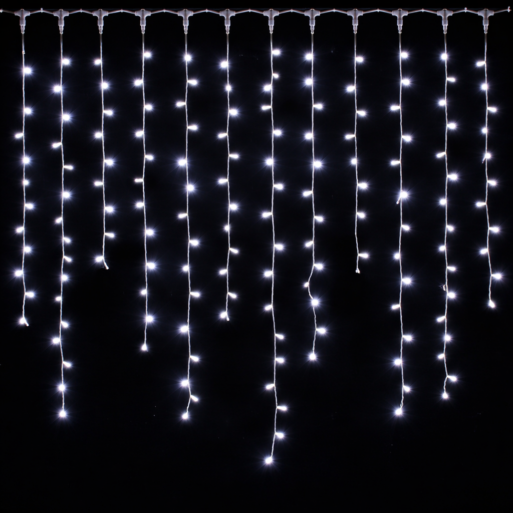 Nos rideaux lumineux sont conçus pour offrir un rendu homogène et raffiné. Chaque module mesure 1 mètre de large, avec une hauteur alternée de 50 cm et 100 cm, créant un effet stalactite naturel et dynamique. Cette alternance apporte du relief et du mouvement à l’installation. Nous proposons également une version en 1 mètre de hauteur uniforme, idéale pour des façades plus imposantes ou des installations nécessitant une couverture plus marquée.