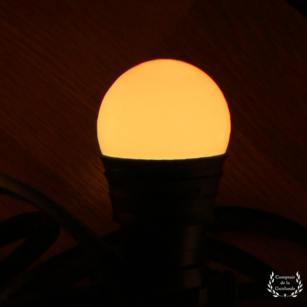 L'Ampoule Led 1 W Blanc chaud E27 G45 est parfaite pour les guirlandes guinguette De qualité professionnelle, cette ampoule de 1 watt est légère et très robuste par sont enveloppe en plastique pvc. Pour éclairer votre jardin ou votre terrasse, vous allez l'adorer ! Retrouvez sans attendre toutes ses caractéristiques !